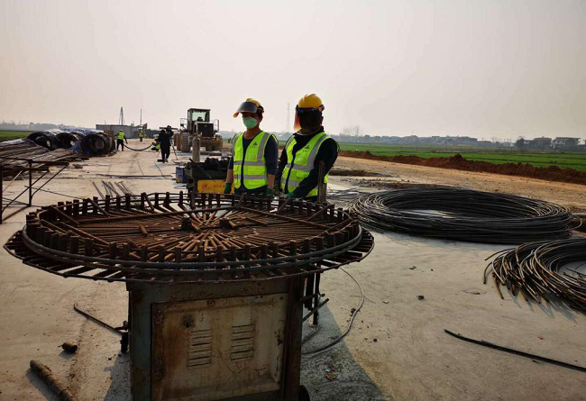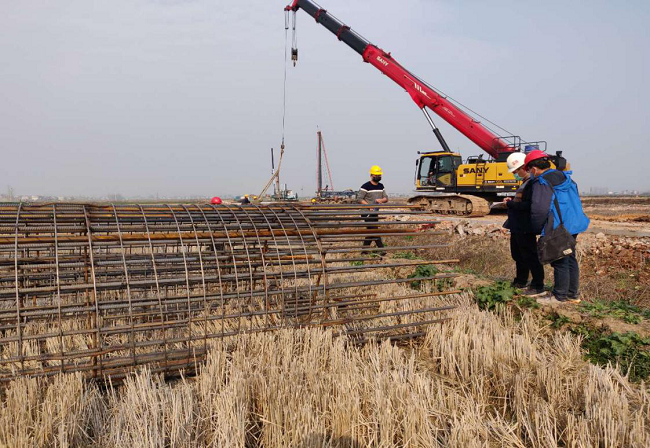 項(xiàng)目部及時(shí)編制復(fù)工方案和應(yīng)急預(yù)案,積極與安慶市交通局、望江縣政府、縣交通局進(jìn)行溝通,抗疫同時(shí)全力準(zhǔn)備復(fù)工申請(qǐng),2月23日望江縣交通局對(duì)項(xiàng)目的復(fù)工申請(qǐng)進(jìn)行了正式批復(fù)許可。2月25日,項(xiàng)目全面復(fù)工,楊灣河特大橋引橋樁基順利開(kāi)鉆、主橋樁基鋼筋籠制作、路基涵洞工程正緊鑼密鼓開(kāi)展,為優(yōu)質(zhì)高效地完成全年建設(shè)任務(wù)打下扎實(shí)基礎(chǔ)。