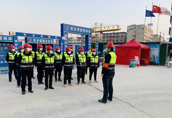 (項(xiàng)目部進(jìn)行班前安全教育和疫情防控交底)