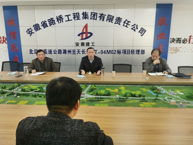 3月19日,安徽路橋集團(tuán)黨委書記、董事長盛明宏先后前往明巢高速(滁州段)03標(biāo)、滁天高速04標(biāo)項目調(diào)研疫情防控和復(fù)工復(fù)產(chǎn)情況。公司黨委委員、副總經(jīng)理陳莘,總工程師王家林陪同調(diào)研。