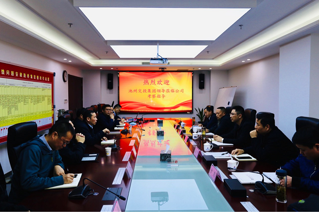 池州交投集團交通建設有限公司執(zhí)行董事陸洲,池州交投集團交通建設有限公司路橋建設事業(yè)部經(jīng)理張征,公司黨委副書記、總經(jīng)理歐陽志宜,副總經(jīng)理盧軍球等參加座談。