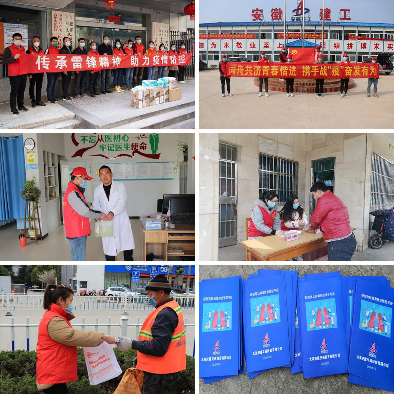 黨有號(hào)召,團(tuán)有行動(dòng)。在疫情防控工作的關(guān)鍵時(shí)期,公司團(tuán)員青年立即行動(dòng),積極參與。公司機(jī)關(guān)赴合肥市廬陽區(qū)人民政府三孝口街道辦事處開展疫情防控志愿活動(dòng),向辦事處捐贈(zèng)口罩、消毒液及手套等防疫物資,在辦事處負(fù)責(zé)人的帶領(lǐng)下,走進(jìn)百大CBD寫字樓、九州大廈、永紅路社區(qū)等地,向群眾宣傳防疫知識(shí),幫助測量體溫,指導(dǎo)掃描“安康碼”,做好人員出入登記。懷寧安建公司集中觀看了武漢雷神山建設(shè)視頻短片。隨后,志愿者前往各工區(qū)駐地、沿線已拆遷的百姓家庭以及村衛(wèi)生院,贈(zèng)送口罩、84消毒液、防疫知識(shí)手冊(cè)等,助力群眾共同戰(zhàn)“疫”。淮北安建公司、淮北交通公司主動(dòng)請(qǐng)纓來到淮北市特鑿公司小區(qū),協(xié)助測量體溫、登記來訪人員、排查外來住戶,向居民發(fā)放宣傳手冊(cè),宣講疫情防控知識(shí)。太湖安建公司根據(jù)集團(tuán)和公司下發(fā)的防疫知識(shí)手冊(cè),改編成普通居民可用版并裝訂成冊(cè),分發(fā)給駐地太湖縣赤土嶺居民,提高居民的防疫意識(shí)。靈璧安建公司把防護(hù)口罩送到辛勤工作的環(huán)衛(wèi)工人手中,把溫暖送到他們的心上。
