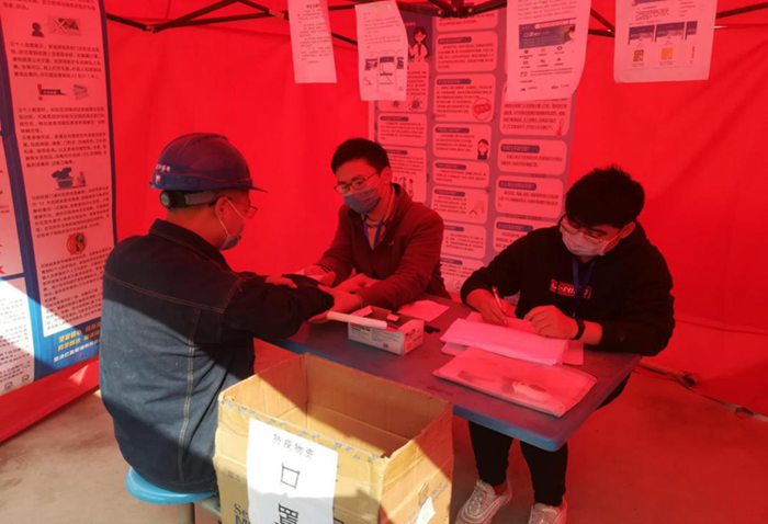 阜陽公司團支部組織團員青年看望項目首批復(fù)工建設(shè)者,為他們送去消毒水、口罩等防疫必需品,并宣傳防疫知識。同時在項目售樓部,開展團員青年站崗服務(wù)活動,為進出行人提供體溫檢測、發(fā)放防疫知識要點、口罩等防疫物資。