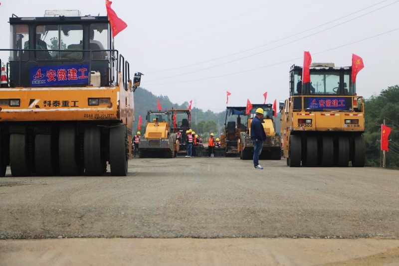 五月的陽光驅(qū)散疫情的陰霾,大干的號角響徹項目一線。5月6日上午,安建投資懷寧S238PPP項目施工現(xiàn)場,機(jī)械轟鳴,人聲鼎沸,項目底基層水穩(wěn)試驗段攤鋪正式開始。