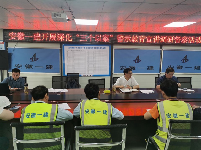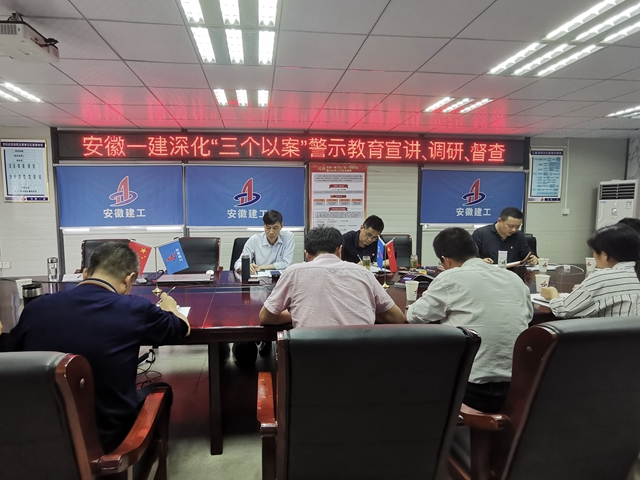 根據(jù)建工控股黨委深化“三個以案”警示教育工作部署和公司黨委安排,5月7日至5月25日,安徽一建領(lǐng)導(dǎo)班子成員分別帶隊(duì),赴聯(lián)系點(diǎn)單位及重點(diǎn)項(xiàng)目、偏遠(yuǎn)項(xiàng)目、困難項(xiàng)目,開展宣講、調(diào)研、督查和三級政治監(jiān)督談話。