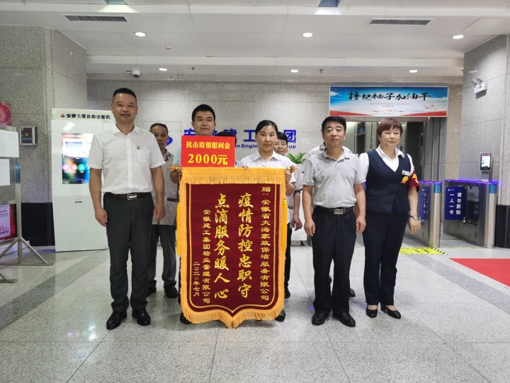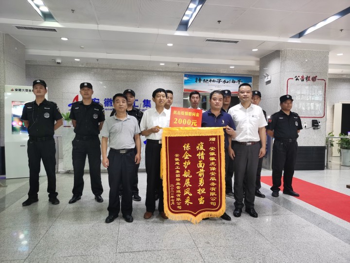 會(huì)后,王金宏代表物業(yè)公司將兩面寫有“疫情面前顯擔(dān)當(dāng),保企護(hù)航展風(fēng)采”、“疫情防控忠職守,點(diǎn)滴服務(wù)暖人心”的錦旗及慰問(wèn)金分別贈(zèng)予外包保安、保潔單位。