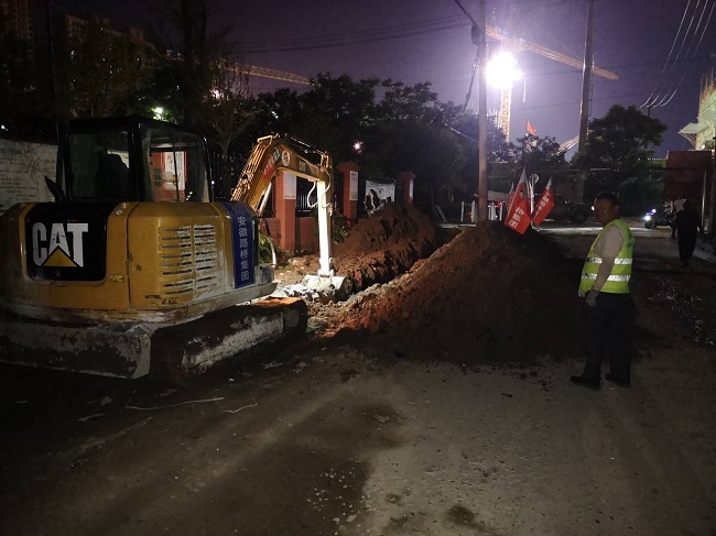 傍晚18時,接到住建局派達的任務后,安徽路橋集團利辛PPP項目部領導班子在第一時間到深入現(xiàn)場了解情況,組織設備、人員進場,在仔細的現(xiàn)場排查、認真聽村民反映積水的情況后組織開挖防洪排水溝。