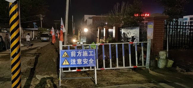 張橋口村落范圍約300米,西接光明路,東至駐馬溝。村內(nèi)均是自建砂石硬化路,道路狹窄,管線復雜。項目部安排兩臺挖機從西向東,兩條排水管溝同時開挖,經(jīng)過12小時的努力,7月17日8時,項目完成680m管溝開挖。此后,又耗時4個小時,將村內(nèi)原有排水溝經(jīng)光明路人行道外側(cè)與新建管溝連通。