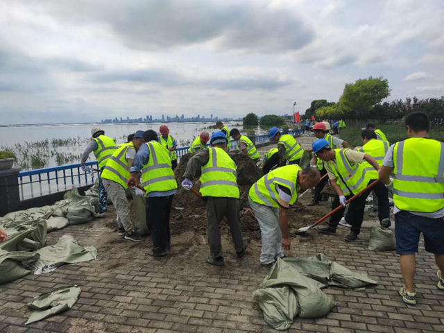 7月21日,龍川里項目部接到上級主管部門安排的抗洪搶險任務(wù),迅速行動。項目部生產(chǎn)經(jīng)理朱仁厚在回家的途中接到通知后,立即調(diào)轉(zhuǎn)車頭趕回工地,動員青年管理人員參加抗洪搶險突擊隊,籌備抗洪搶險物資。人員集合完畢后,立即奔赴巢湖邊環(huán)湖北路搶險一線現(xiàn)場裝沙袋,運沙袋,筑堤。隨后項目經(jīng)理方勇也趕到現(xiàn)場給突擊隊鼓勁打氣,并加入搬運沙袋隊伍之中。經(jīng)過5個小時的奮戰(zhàn),出色完成了100多米防洪堤的抗洪搶險任務(wù)。在此次抗洪搶險中龍川里項目部表現(xiàn)出哪里有險情哪里上,防汛搶險,沖鋒在前的擔(dān)當(dāng)精神。