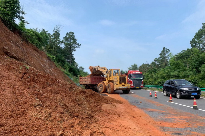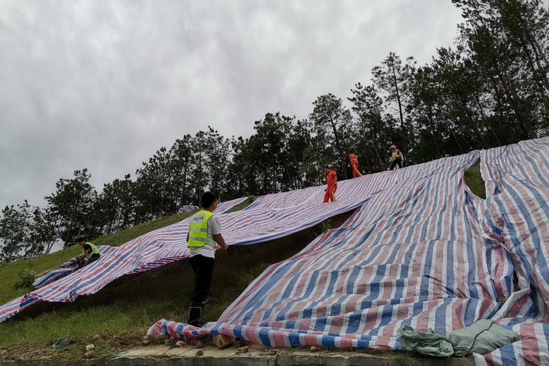 汛期來臨之前,廣德新鳳公司提前部署,組織養(yǎng)護(hù)作業(yè)人員對(duì)全線橋涵、邊溝、泄水槽和排水溝等設(shè)施的雜物、泥土、雜草進(jìn)行全面排查、清理,保證排水通暢、道路安全。由于降水集中且雨量較大,部分邊坡經(jīng)雨水沖刷導(dǎo)致局部坍塌,項(xiàng)目公司第一時(shí)間到達(dá)現(xiàn)場(chǎng),判斷坍塌影響程度,安排人員放置錐形桶等警示防撞設(shè)施,保障過往車輛安全出行。同時(shí)搶抓晴好天氣,組織養(yǎng)護(hù)隊(duì)伍采取濾網(wǎng)覆蓋等措施對(duì)邊坡加固,防止安全隱患發(fā)生。