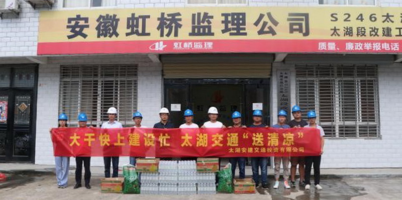 8月4日至8月6日,安徽建工集團(tuán)太湖S246PPP項(xiàng)目聯(lián)合太湖縣政府開展“送清涼”活動(dòng),太湖縣委書記程志翔、太湖縣副縣長(zhǎng)公安局局長(zhǎng)王屑、太湖縣交通局局長(zhǎng)黃東升、太湖縣總工會(huì)主席李曉斌、安建投資太湖項(xiàng)目負(fù)責(zé)人朱小敏,看望慰問(wèn)高溫酷暑時(shí)節(jié)堅(jiān)守工作崗位的廣大一線職工,給他們送去組織上的關(guān)懷和夏日的清涼,并送上了礦泉水、綠豆、毛巾等防暑降溫用品。