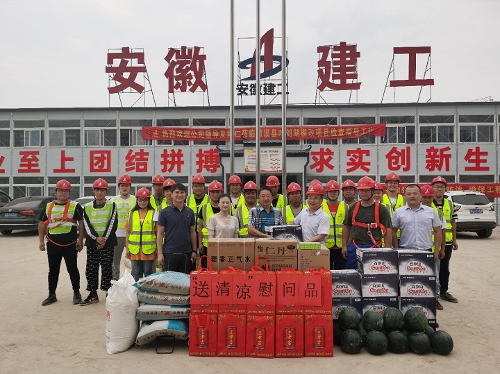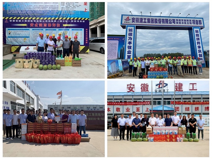 公司領(lǐng)導(dǎo)班子成員高立久、劉國良、陳道兵、王軍、谷建偉分別先后前往安徽理工大學(xué)新建學(xué)生公寓EPC項目、第一公司滁州營房新苑安置小區(qū)項目、恒大壽縣空港小鎮(zhèn)項目、第二公司績溪PPP項目和EPC項目、懷寧PPP項目、潛山高鐵場站PPP項目、第三公司涇縣學(xué)業(yè)小區(qū)EPC項目等,現(xiàn)場看望慰問堅守崗位的一線干群,并送去綠豆、白糖、藿香正氣水等防暑降溫物品。