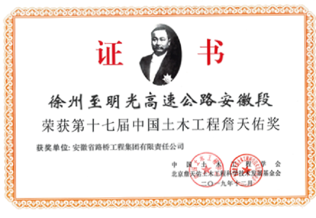 9月22日,中國土木工程學會2020年學術(shù)年會暨第十七屆中國土木工程詹天佑獎頒獎大會在北京召開,安徽路橋集團參建的徐明高速公路安徽段榮膺該獎項。
