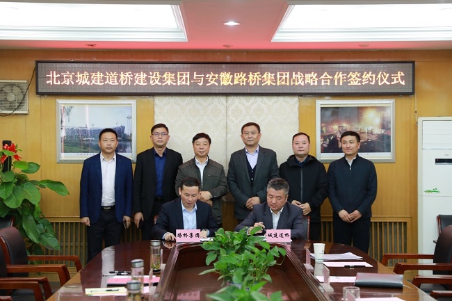 11月3日,安徽路橋集團(tuán)與北京城建道橋集團(tuán)戰(zhàn)略合作簽約儀式在北京舉行。北京城建道橋集團(tuán)董事長(zhǎng)連旦寧、黨委書記姚自然、總經(jīng)理涂海毅,華晟公司總經(jīng)理高治泉、副總經(jīng)理李冰,安徽路橋集團(tuán)黨委書記、董事長(zhǎng)盛明宏,副總經(jīng)理盧軍球,總經(jīng)理助理、檢測(cè)公司負(fù)責(zé)人卞寶林,二分公司總經(jīng)理張立兵、設(shè)備公司總經(jīng)理朱小軍、北京分公司總經(jīng)理劉超等出席簽約儀式。