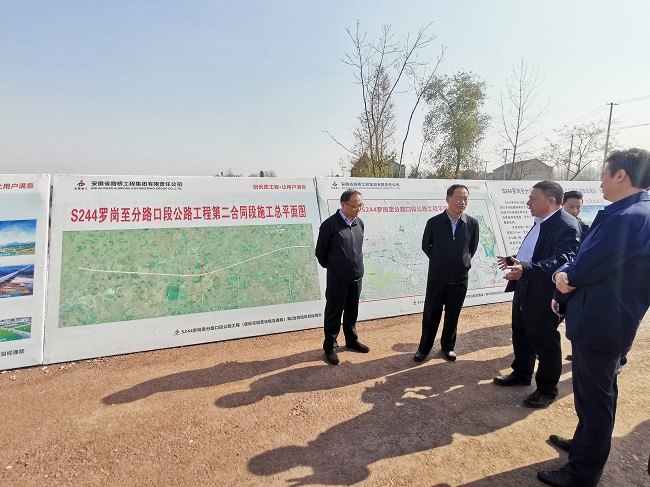 11月13日上午,六安市委副書記、市長(zhǎng)葉露中蒞臨安徽路橋集團(tuán)六安S244公路工程2標(biāo)調(diào)研項(xiàng)目建設(shè)工作,市委常委、副市長(zhǎng)束學(xué)龍、市交通局局長(zhǎng)李衛(wèi)東等相關(guān)領(lǐng)導(dǎo)參加調(diào)研。