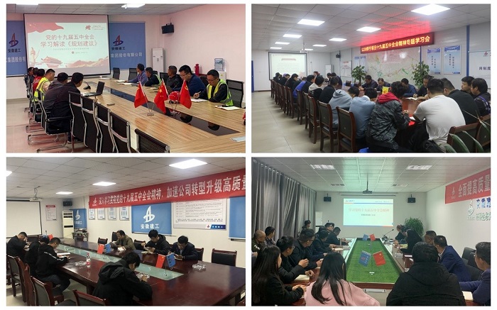 公司所屬各分支機構(gòu)黨支部及時組織全體黨員干群通過“三會一課”、黨員活動日、“學習強國”平臺、制作宣傳展板、現(xiàn)場懸掛條幅等多種形式,全面學習宣傳貫徹黨的十九屆五中全會精神,營造良好學習氛圍,推進大干快上超產(chǎn),力爭超額完成全年目標任務(wù)。