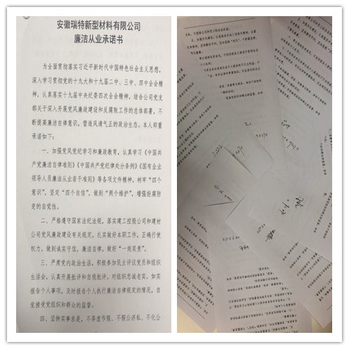 安徽瑞特始終將“廉潔文化示范點(diǎn)”創(chuàng)建作為打造企業(yè)品牌建設(shè)的有效載體。下一步,我們將進(jìn)一步提高黨員干部廉潔從業(yè)意識和崇廉拒腐、尚儉戒奢的價(jià)值追求,在全公司進(jìn)一步營造了風(fēng)清氣正的廉政文化濃厚氛圍。