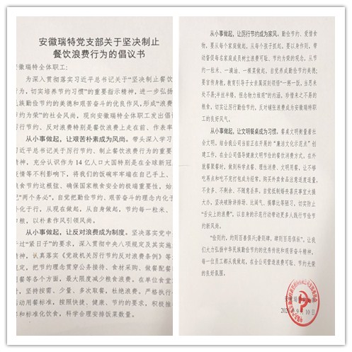 領(lǐng)導(dǎo)班子身體力行、率先垂范,帶領(lǐng)全體員工共同實(shí)踐,著力打造廉潔企業(yè)。通過“支委會第一議題”制度,認(rèn)真宣貫落實(shí)習(xí)近平總書記考察安徽重要講話指示精神,將學(xué)習(xí)貫徹落實(shí)習(xí)近平總書記重要講話指示精神工作與廉潔文化示范點(diǎn)創(chuàng)建有機(jī)結(jié)合,以環(huán)保整改和災(zāi)后重建為抓手,著力推進(jìn)安徽瑞特高質(zhì)量發(fā)展。同時,公司領(lǐng)導(dǎo)帶頭落實(shí)各項(xiàng)創(chuàng)建活動,不斷筑牢廉政思想防線,時刻敲響廉政勤政警鐘,積極開展廉潔談話,加強(qiáng)檢查、監(jiān)力度,在全公司厚植遵章守紀(jì)、廉潔從業(yè)理念。