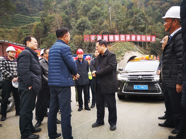 調(diào)研中,錢東升一行深入蔡坑隧道進(jìn)口施工現(xiàn)場,認(rèn)真聽取了項(xiàng)目負(fù)責(zé)人關(guān)于項(xiàng)目整體施工的進(jìn)展情況的匯報(bào),詢問了目前存在的困難。錢東升對項(xiàng)目部克服困難,快速打開互通區(qū)橋梁下構(gòu)、格構(gòu)墩和傍山橋施工局面表示肯定,并對下一步的工作做了具體部署:一是要加大資源及環(huán)保投入,在保證綠色文明施工及安全質(zhì)量的前提下加快施工進(jìn)度,確保2021年底主體工程全線完工,2022年具備路面工程施工的條件;二是要加大溝通力度,穩(wěn)妥解決遺留地方問題,做好項(xiàng)目周邊居民的溝通協(xié)調(diào)工作,加快征拆進(jìn)度,保障施工生產(chǎn)順利進(jìn)行。