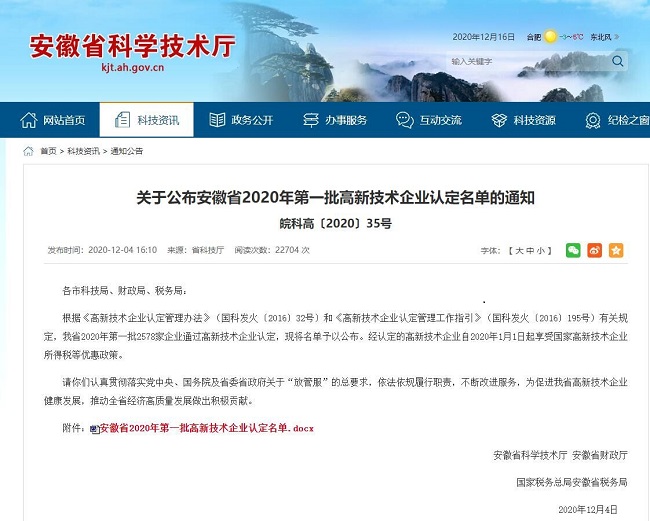 在路橋集團的統(tǒng)一部署下,在各部門大力支持配合下,歷時一年多,從資料收集、信息匯總到正式申報,本次高新技術(shù)企業(yè)認定工作最終圓滿完成。安徽省科學(xué)技術(shù)廳、安徽省財政廳、國家稅務(wù)總局安徽省稅務(wù)局聯(lián)合下發(fā)皖科高[2020]35號文件正式批準(zhǔn)檢測公司獲得高新技術(shù)企業(yè)認定。