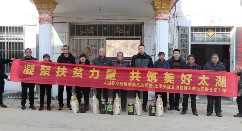 12月24日,安建投資太湖聯(lián)合黨支部與太湖縣交通運輸局機關(guān)黨委共同開展“凝聚扶貧力量 共筑美好太湖”主題黨日活動,為太湖縣天光村困難群眾送去溫暖。