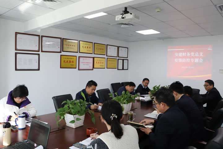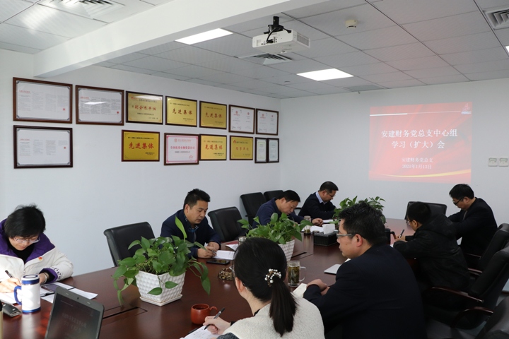 1月12日下午,安建財務公司召開黨總支中心組學習(擴大)會議暨疫情防控專題會,會議由黨總支副書記、總經理于忠山主持,各部門負責人及所屬各黨支部委員參加會議。