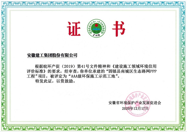 近日,安建總承包第四公司固鎮(zhèn)縣南城區(qū)生態(tài)路網(wǎng)PPP項(xiàng)目獲評省環(huán)境保護(hù)產(chǎn)業(yè)發(fā)展促進(jìn)會的“省AAA級環(huán)保施工示范工地”稱號。