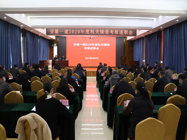 2月3日下午,在加強疫情防控措施的前提下,安徽一建召開了2020年度機關績效考核述職會,公司領導班子成員、機關中層管理人員、子分公司負責人參加了會議。