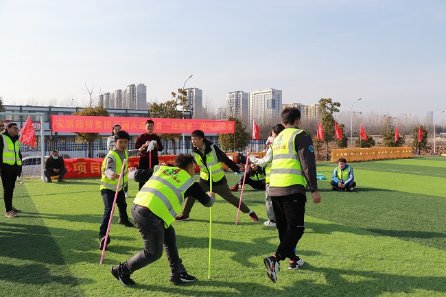 項目部還舉辦了“迎新春”趣味運動會,讓留守員工在工地這個別樣年過得更加熱熱鬧鬧,紅紅火火。摸石過河、同心擊鼓、不倒森林、集體跳繩,每個項目既是智慧和體力的角逐,更是團隊協(xié)作能力的比拼。從比賽開始,到結束,現(xiàn)場的歡聲笑語此起彼伏,加油助威聲不絕于耳,好不熱鬧。本次趣味體育比賽,培養(yǎng)項目員工競爭拼搏精神及團隊協(xié)作能力,提升項目凝聚力,號召項目全體員工在新年里精誠團結,步調一致,擰成一根繩,卯足一股勁,團結協(xié)作,合力攻堅,為項目年度任務目標的圓滿完成而共同努力奮斗。