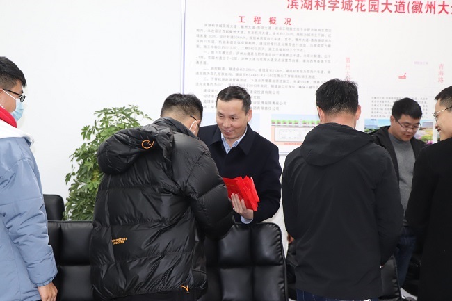 2月12日下午,時值牛年農(nóng)歷大年初一,公司黨委書記、董事長盛明宏蒞臨花園大道項目,代表公司黨委向留守員工送上新年的祝福和節(jié)日紅包。