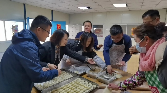 看見廚房正忙活著搟餃皮、拌餃餡,王書記也加入到包餃子的行列,把對員工和公司的美好祝愿包進了每一只餃子里。希望他們在新的一年,繼續(xù)保持不畏艱難、銳意進取的奮斗韌勁,以不怕苦、能吃苦的牛勁牛力,勇往直前!