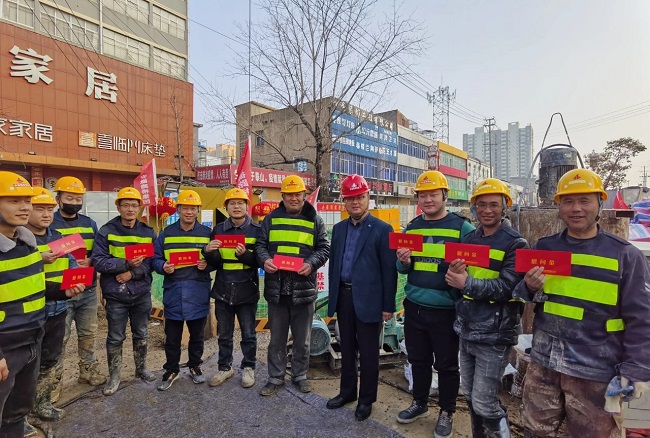 盧軍球表示,新春期間職工堅守施工現(xiàn)場,克服困難,默默奉獻,充分展現(xiàn)了舍“小家”,顧“大家”的家國情懷。他對堅守崗位的職工表示感謝,并送上慰問品。同時,他還要求項目部全體員工站好節(jié)日期間這班崗,落實好疫情防控措施,在保證施工安全及工程質(zhì)量的前提下,加快工程進度,再接再厲,再創(chuàng)佳績。