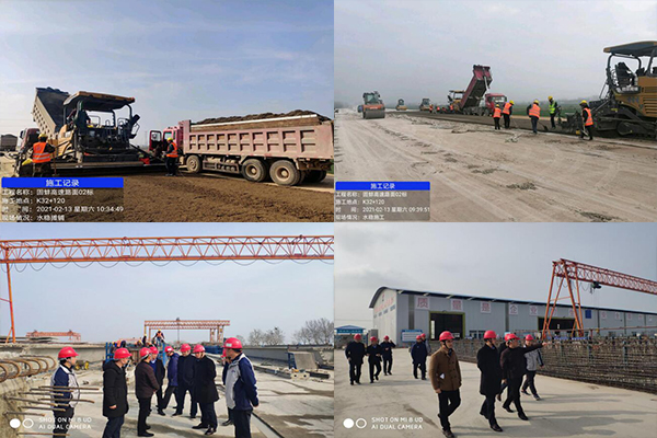 全員聚力一線忙,共贏新年開門紅。固蚌預(yù)制標(biāo)及路面02標(biāo)項目春節(jié)不放假,工地不停工。兩項目搶抓節(jié)日期間晴好天氣,為確保固蚌高速2021年7月1日順利通車,實現(xiàn)安徽省“縣縣通高速”目標(biāo)加班加點。春節(jié)期間,路港公司副總經(jīng)理張俊一行赴項目部查看箱梁生產(chǎn)線施工情況,并為堅守一線的全體工作人員送上新春的祝福。