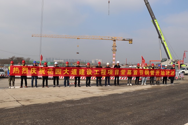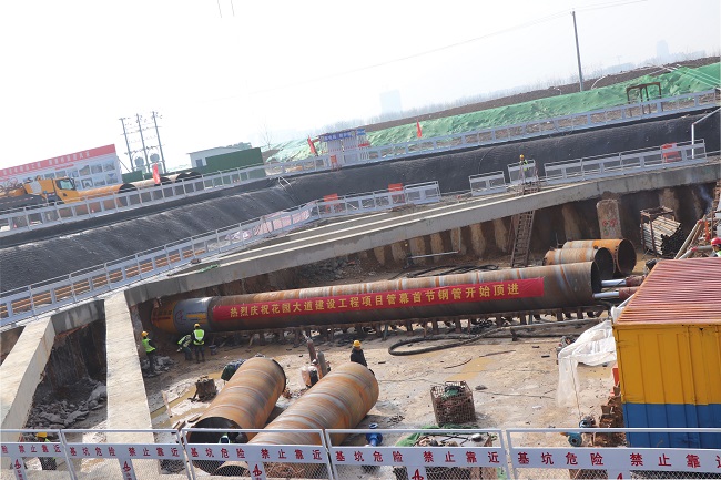 3月2日9時18分,安徽路橋集團花園大道(徽州大道-包河大道)建設(shè)工程隧道管幕首節(jié)鋼管開始頂進。