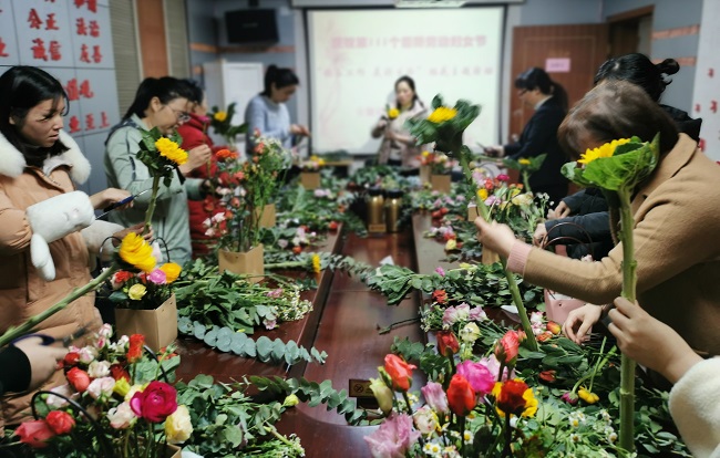陽春三月,春暖花開。3月8日上午,安建服務(wù)中心的“職工之家”不斷傳出女職工的歡聲笑語。原來,中心工會正在組織開展“三八”婦女節(jié)插花活動。