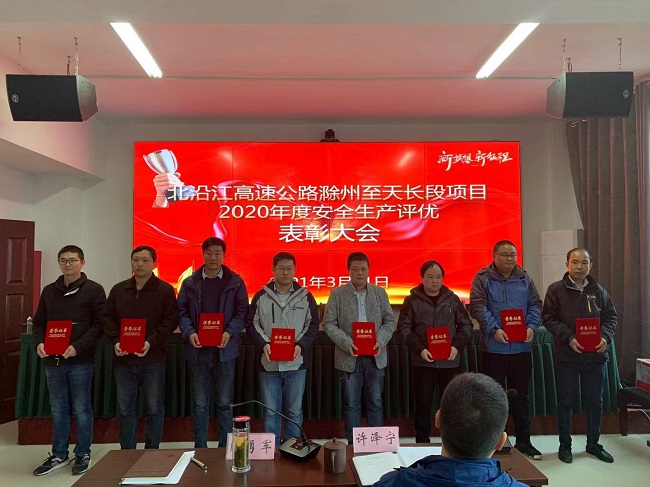 3月11日,在滁天高速項(xiàng)目2020年度安全生產(chǎn)評(píng)優(yōu)表彰大會(huì)上傳來(lái)喜訊,安徽路橋集團(tuán)滁天高速04標(biāo)獲得2020年度“安全生產(chǎn)先進(jìn)集體”、“安全生產(chǎn)先進(jìn)單位”的榮譽(yù),項(xiàng)目安全部楊瑞波同志榮獲2020年度“安全生產(chǎn)先進(jìn)個(gè)人”稱(chēng)號(hào)。