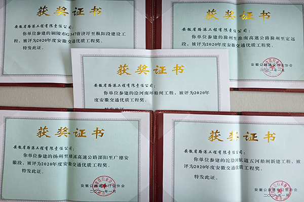 近年來(lái),安徽路港注重工程質(zhì)量,開(kāi)展質(zhì)量攻關(guān),打造精品工程,創(chuàng)優(yōu)奪杯成績(jī)斐然!