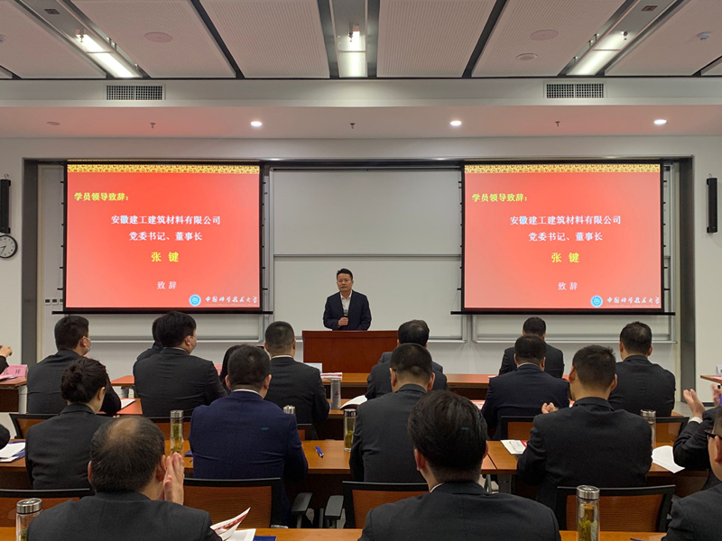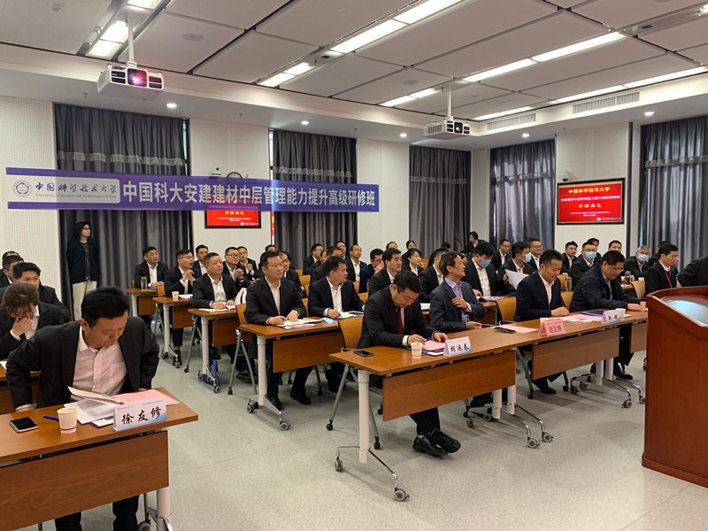 中國科大管理學(xué)院EDP中心&國際金融研究院EE中心副主任、副教授周垂日,中國科大EDP中心&EE中心副主任孔祥,安建建材黨委副書記、工會主席胡運(yùn)春,黨委委員、副總經(jīng)理徐友修,公司副總經(jīng)理廖紹鋒及中層管理人員參加開班典禮。