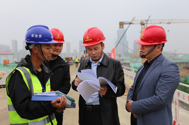 在檢查中,盛明宏實(shí)地查看了項(xiàng)目生產(chǎn)各項(xiàng)工作,詳細(xì)了解地鐵7號(hào)線項(xiàng)目排水箱涵深基坑施工、方興大道項(xiàng)目高架墩柱澆筑、花園大道項(xiàng)目隧道管幕鋼管頂進(jìn)施工進(jìn)展情況,聽(tīng)取項(xiàng)目工作匯報(bào),并與項(xiàng)目管理人員就施工重難點(diǎn)、成本管控、獎(jiǎng)項(xiàng)申報(bào)等工作進(jìn)行交流。