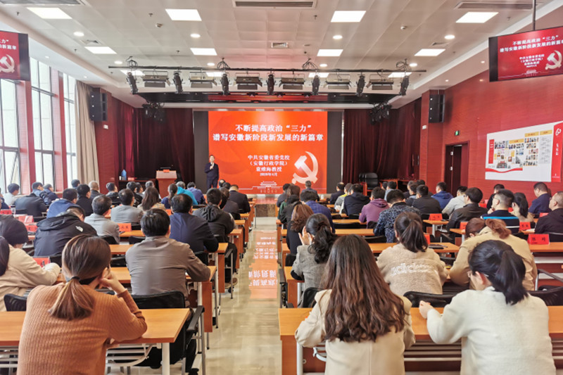 安徽省委黨校副校長(zhǎng)、黨委委員袁維海教授應(yīng)邀作題為《不斷提高政治“三力”,譜寫(xiě)安徽新階段新發(fā)展的新篇章》專題報(bào)告。袁校長(zhǎng)首先從深入學(xué)習(xí)貫徹習(xí)近平總書(shū)記關(guān)于加強(qiáng)黨的政治建設(shè)重要論述出發(fā),結(jié)合新一輪深化“三個(gè)以案”警示教育,詮釋了提高“政治三力”的主要內(nèi)容和要求。切實(shí)增強(qiáng)政治意識(shí),善于從政治上看問(wèn)題,善于把握政治大局,不斷提高政治判斷力、政治領(lǐng)悟力、政治執(zhí)行力。用一組組數(shù)據(jù)和生動(dòng)案例,展示了反腐敗斗爭(zhēng)的長(zhǎng)期性、艱巨性、嚴(yán)峻性、復(fù)雜性。結(jié)合長(zhǎng)三角一體化、我省經(jīng)濟(jì)形勢(shì)分析,就如何堅(jiān)持創(chuàng)新發(fā)展、協(xié)調(diào)發(fā)展、綠色發(fā)展、開(kāi)放發(fā)展、共享發(fā)展,實(shí)現(xiàn)“十四五”規(guī)劃和二〇三五年遠(yuǎn)景目標(biāo),形成推動(dòng)建設(shè)新階段現(xiàn)代化美好安徽的強(qiáng)大合力進(jìn)行了全面的分析和解讀。