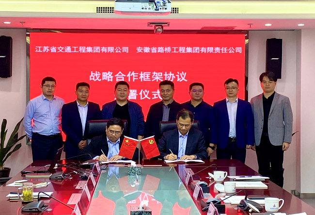 4月29日下午,安徽省路橋工程集團(tuán)有限責(zé)任公司與江蘇省交通工程集團(tuán)有限公司戰(zhàn)略合作框架協(xié)議簽約儀式在合肥舉行。公司黨委書記、董事長盛明宏,黨委副書記、總經(jīng)理歐陽志宜、黨委委員、紀(jì)委書記王勝利,江蘇交通集團(tuán)黨委書記、董事長、總裁張曉宇,副總裁傅玉羅等出席簽約儀式。