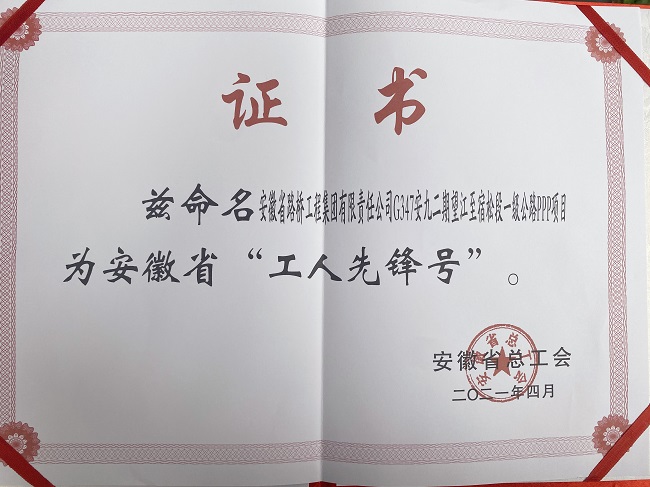 安徽路橋集團G347PPP項目獲得安徽省“工人先鋒號”,收獲的不僅是一份榮譽,更是對項目所有員工工作的肯定,安徽路橋集團將繼續(xù)當(dāng)好排頭兵和先鋒軍,大力發(fā)揚孺子牛、拓荒牛、老黃牛的精神,為“千億安徽建工”、“百億路橋集團”貢獻力量。