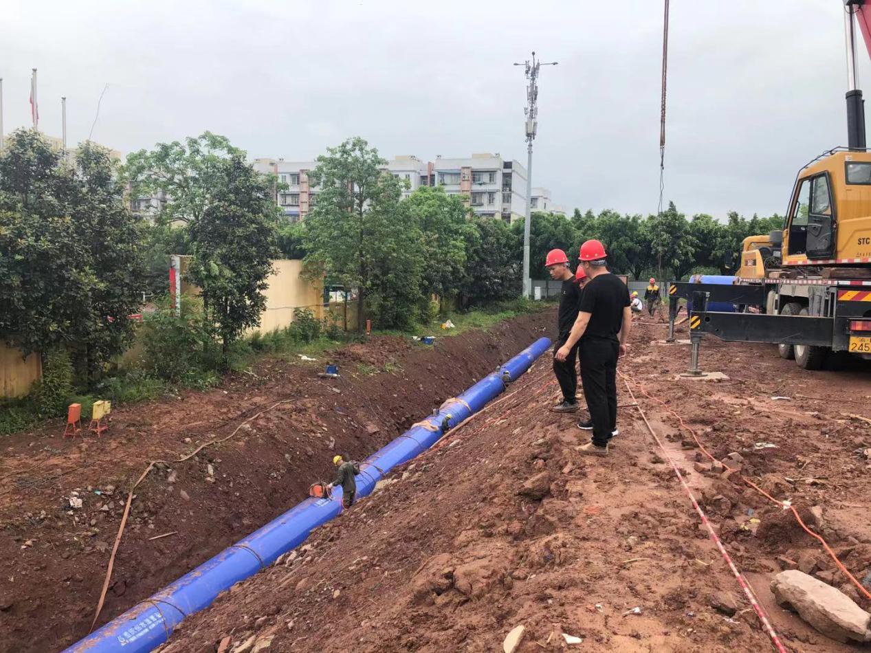 西南分公司承建的重慶市大學(xué)城水廠項(xiàng)目提前謀劃,協(xié)調(diào)現(xiàn)場工人節(jié)假日加班作業(yè),配置挖機(jī)16臺,鋼管累計(jì)進(jìn)場2802米,多個(gè)工作面同時(shí)施工。圖為項(xiàng)目作業(yè)人員進(jìn)行鋼管焊接工作。