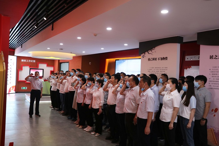 瑤海區(qū)人民法院廉政文化館共兩層,內(nèi)容分為“廉政文化館”“法治文化教育館”和“院史陳列館”三個篇章,綜合運用展板、實物、雕塑、場景、聲光電等多種形式,將歷史與現(xiàn)實緊密結(jié)合,多角度、大縱深地闡釋廉潔文化這一主題。在一樓警示教育報告廳里,在講解員的解說下,大家依次參觀了鑒史問廉、廉政故事、貪腐之害、時光隧道、廉潔豐碑、廉政成果、廉政文章、廉政寄語八大板塊,參觀過程中大家仔細聆聽,細細研讀,通過展廳內(nèi)文字、實物、整合的典型圖文資料、影音影像等,深入學(xué)習(xí)了廉政文化、中國共產(chǎn)黨反腐倡廉歷史、安徽省反腐倡廉實踐等內(nèi)容,大家在視覺、聽覺上接受了一堂全面生動的反腐倡廉警示教育課?;顒悠陂g,公司黨委書記、董事長胡六中帶領(lǐng)在場全體黨員集體重溫入黨誓詞。