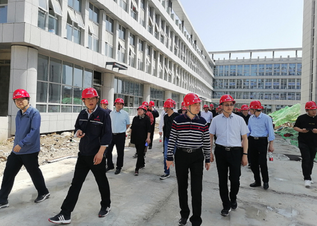 與會(huì)人員首先現(xiàn)場(chǎng)觀摩了阜陽(yáng)市潁東中醫(yī)院項(xiàng)目,在項(xiàng)目經(jīng)理徐明東的講解和帶領(lǐng)下,大家邊走邊看邊交流,詳細(xì)了解了項(xiàng)目實(shí)施情況、施工的重難點(diǎn)、進(jìn)度管控措施。