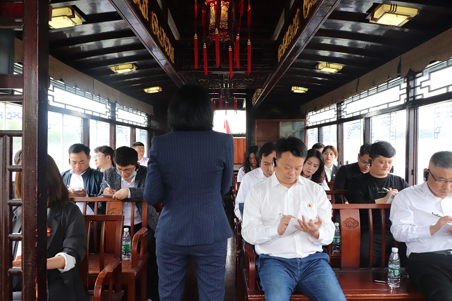 碧波蕩漾的嘉興南湖上,一艘紅色畫(huà)舫見(jiàn)證了一個(gè)標(biāo)志著近代以來(lái)中國(guó)命運(yùn)徹底改變的歷史時(shí)刻。4月25日上午,一分公司黨總支一行人來(lái)到中國(guó)革命的揚(yáng)帆啟航地嘉興南湖,追尋革命原點(diǎn)。一分公司黨員同志、入黨積極分子首先在南湖小船上開(kāi)展中共一大黨史學(xué)習(xí)專題黨課。黨課從中共一大召開(kāi)的背景、過(guò)程、意義、會(huì)議參與者,以及建黨節(jié)紀(jì)念日的由來(lái)等方面娓娓道來(lái),分公司黨總支一行人仔細(xì)聽(tīng)講,認(rèn)真記錄。隨后,分公司黨總支一行人在南湖邊瞻仰紅船,接受革命精神教育,感悟紅船精神中開(kāi)天辟地、敢為人先的首創(chuàng)精神,堅(jiān)定理想、百折不撓的奮斗精神,立黨為公、忠誠(chéng)為民的奉獻(xiàn)精神。