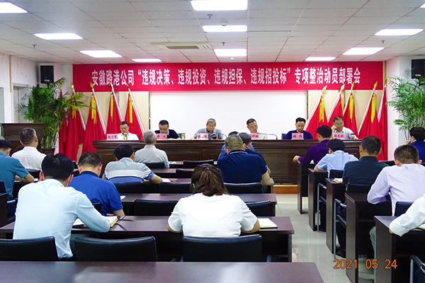 5月24日,安徽路港公司召開“違規(guī)決策、違規(guī)投資、違規(guī)擔保、違規(guī)招投標”四個專項整治動員部署會,公司領(lǐng)導、機關(guān)各部門負責人,在肥單位黨政負責人參加會議,公司黨委副書記、總經(jīng)理錢葉琳主持會議。