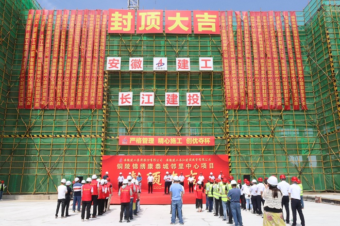 6月9日上午,安徽建工長江建設(shè)投資有限公司承建的銅陵東部城區(qū)錦秀康泰城鄰里中心EPC項(xiàng)目主體結(jié)構(gòu)順利封頂。安徽耀安集團(tuán)黨委書記、董事長、總經(jīng)理姚應(yīng)凌,安建總承包副總經(jīng)理、長江建投黨支部書記、總經(jīng)理陳道兵等出席封頂儀式。