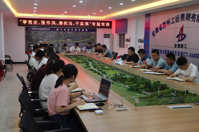 為全面落實(shí)集團(tuán)和公司黨史學(xué)習(xí)教育、新一輪深化“三個(gè)以案”警示教育部署要求。6月8日,安徽路橋集團(tuán)二分公司黨總支書記劉峰在滁天高速04標(biāo)上“學(xué)黨史 強(qiáng)作風(fēng) 勇?lián)?dāng) 干實(shí)事”專題黨課。二分公司機(jī)關(guān)黨支部部分黨員、滁天高速項(xiàng)目黨支部全體黨員、入黨積極分子等參加學(xué)習(xí)。