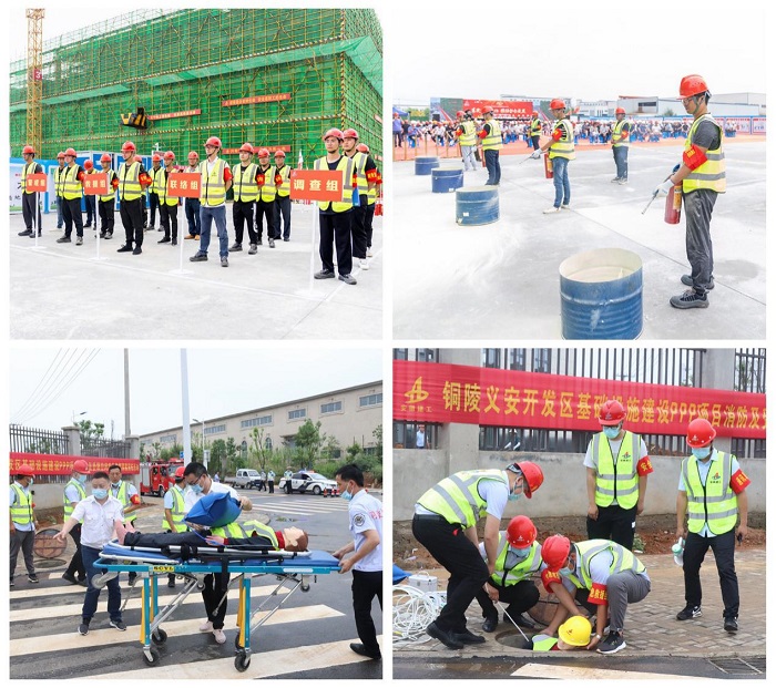 為提高對突發(fā)事件的應(yīng)急處置能力,強化應(yīng)急責(zé)任,檢驗應(yīng)急機制,進(jìn)一步提升應(yīng)急管理和項目安全管理水平,為慶祝建黨100周年創(chuàng)造良好安全生產(chǎn)環(huán)境,近日,安建總承包第二公司潛山高鐵站配套用房PPP項目、第四公司固鎮(zhèn)生態(tài)路網(wǎng)PPP項目、第五公司銅陵義安區(qū)基礎(chǔ)設(shè)施建設(shè)PPP項目等分別協(xié)同當(dāng)?shù)刂鞴懿块T先后組織開展消防、高空墜落、受限空間等應(yīng)急救援演練活動。有關(guān)地方政府的應(yīng)急管理局、住房和城鄉(xiāng)建設(shè)局、重點工程建設(shè)中心等單位負(fù)責(zé)人以及各參建單位項目管理人員共約600余人分別參加。
