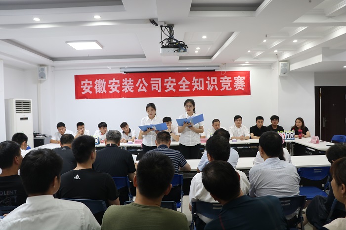6月15日,為迎接全國第二十個“安全生產(chǎn)月”,全面貫徹“落實安全責(zé)任,推動安全發(fā)展”主題,廣泛營造安全文化氛圍,強化安全生產(chǎn)意識,夯實安全生產(chǎn)基礎(chǔ),安徽安裝公司在15樓會議室舉辦安全知識競賽。